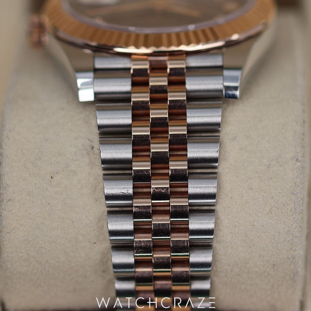 Discover the pinnacle of luxury with the 2022 Rolex Datejust Chocolate Dial 41mm 126331, a stunning masterpiece that marries sophistication with sparkle. This exquisite timepiece features a captivating chocolate dial set against a backdrop of radiant diamond markers, encased in a sleek 41mm rose gold and stainless steel Oyster case.