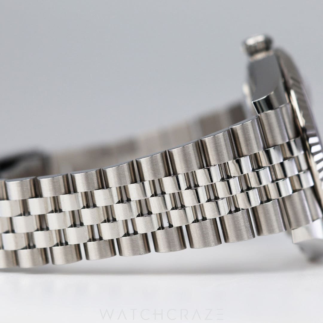The Jubilee bracelet is the final touch of elegance, providing unmatched comfort with its five-piece links. Its polished and brushed finishes add depth to the design, while the hidden Crownclasp ensures a seamless look that’s as secure as it is sleek. This bracelet doesn’t just hug your wrist—it elevates it.