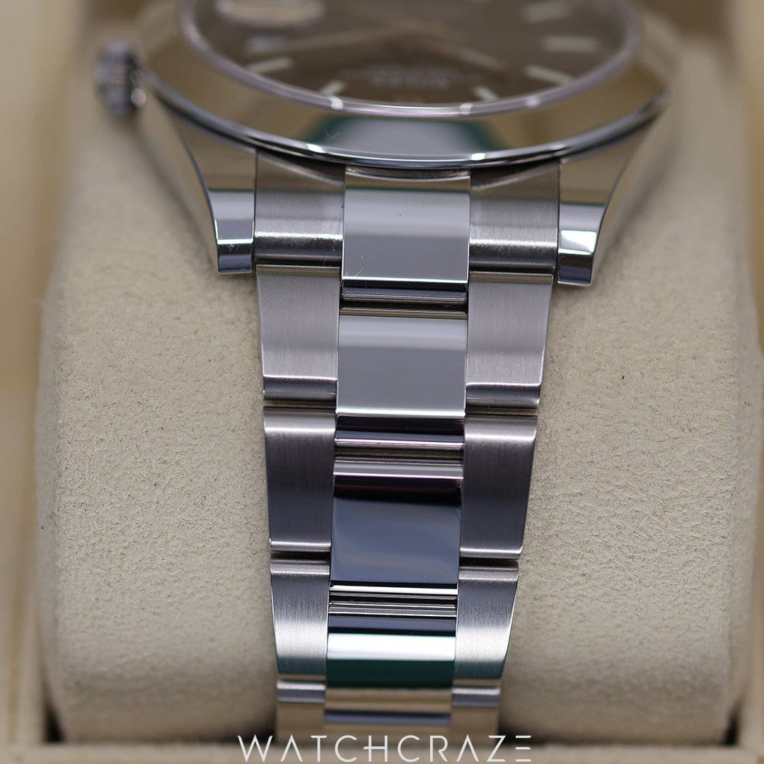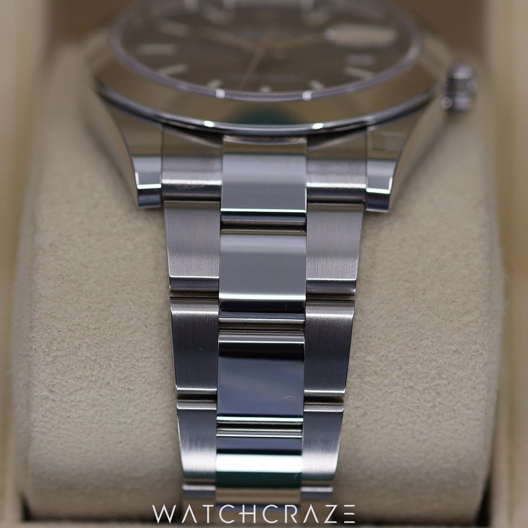 The Datejust’s Cyclops lens amplifies the 3 o’clock date display for easy reading. The Oyster case’s water resistance and durability make it ideal for city exploration or deep sea diving. Its smooth, polished bezel adds luxury.