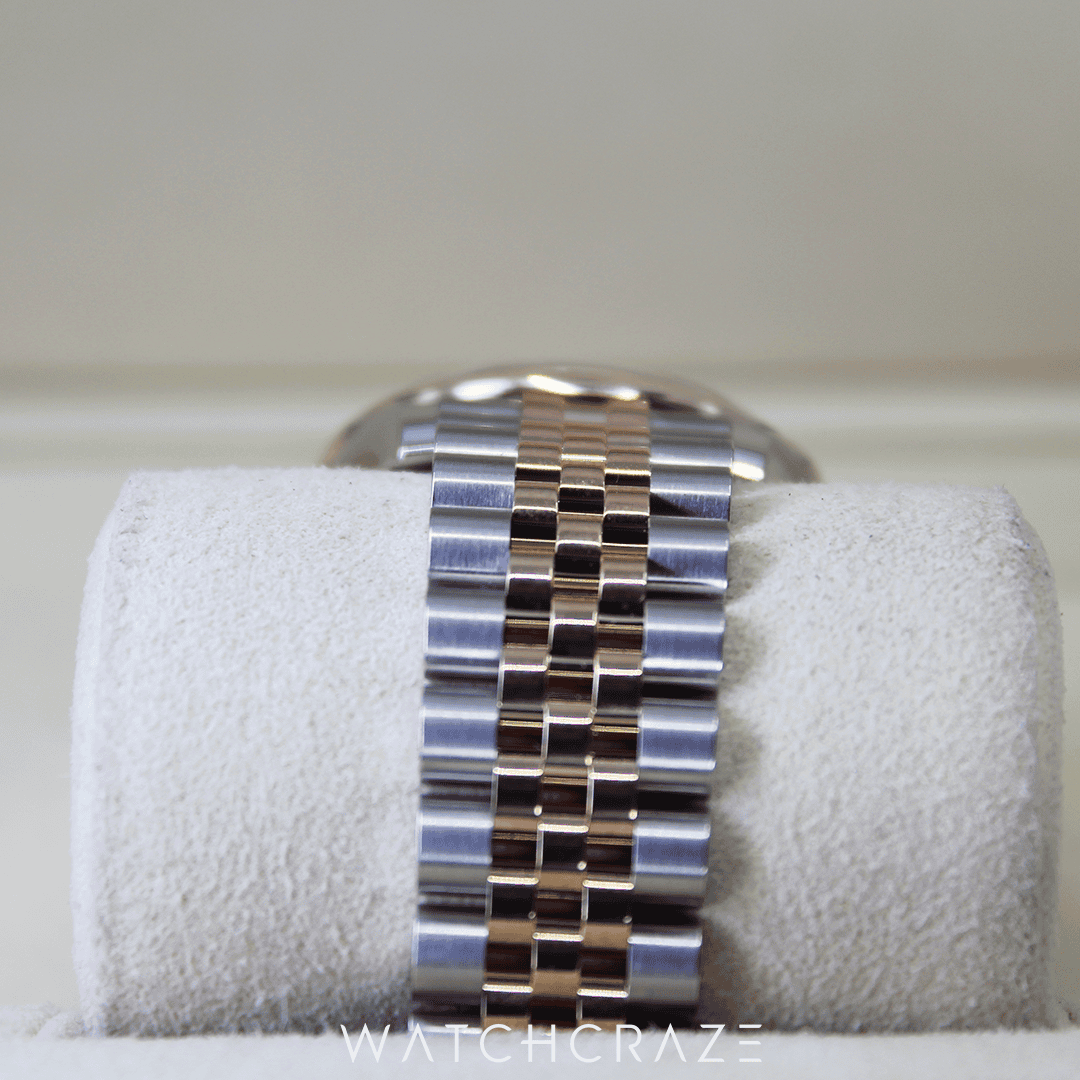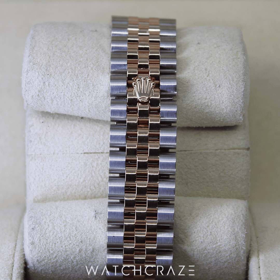 The watch’s exquisite Oyster bracelet, made of 18 ct. Everose gold and oyster steel, adds a touch of class. A folding Oysterclasp completes the classy set, ensuring a snug and comfortable fit.