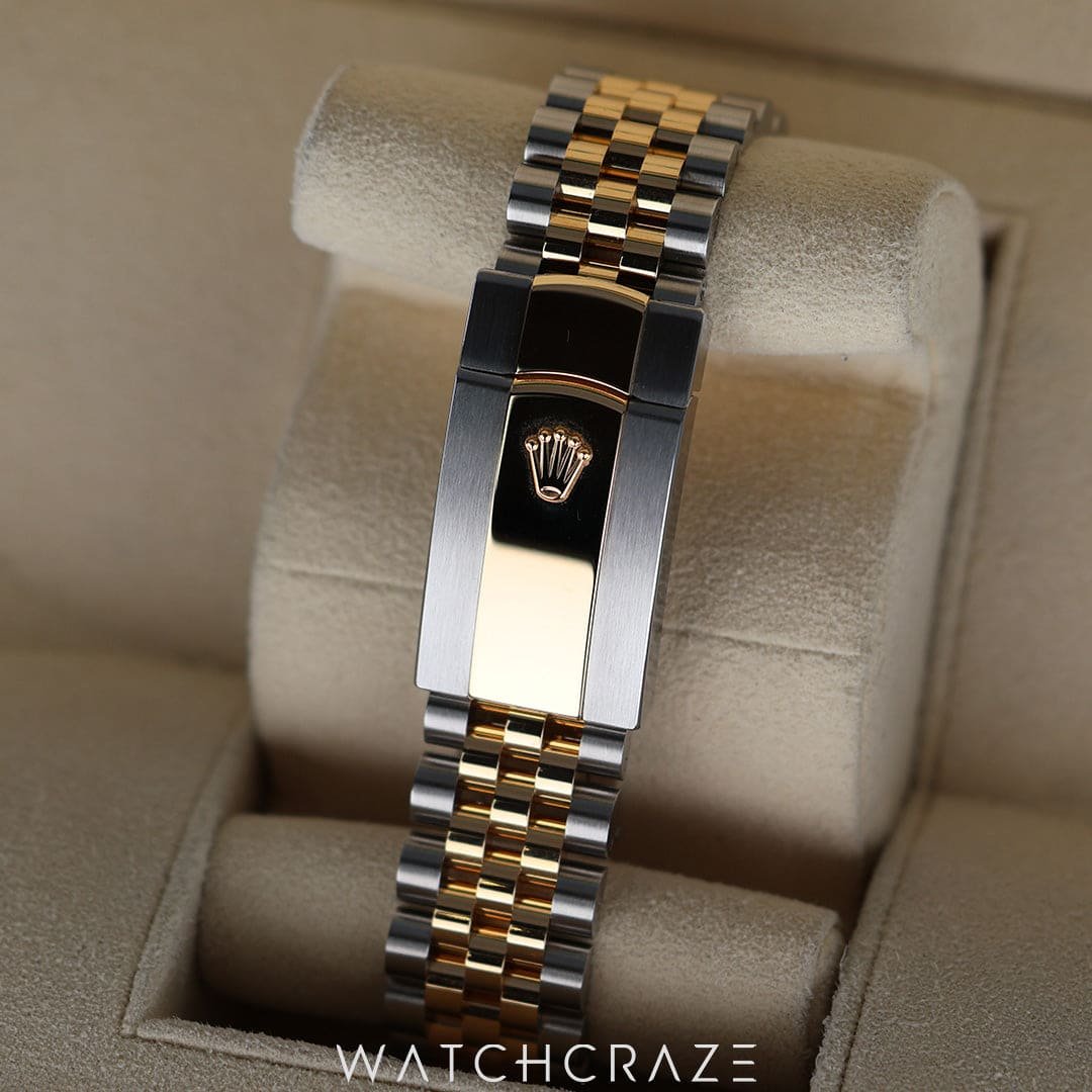 The 41mm case, crafted from a combination of Rolex’s resilient Oystersteel and radiant 18k yellow gold, is a testament to Rolex’s unrivaled craftsmanship. The two-tone design is a perfect harmony of strength and luxury, making this watch as versatile as it is stunning. Whether you’re closing deals or celebrating milestones, this timepiece is the ultimate symbol of your achievements.