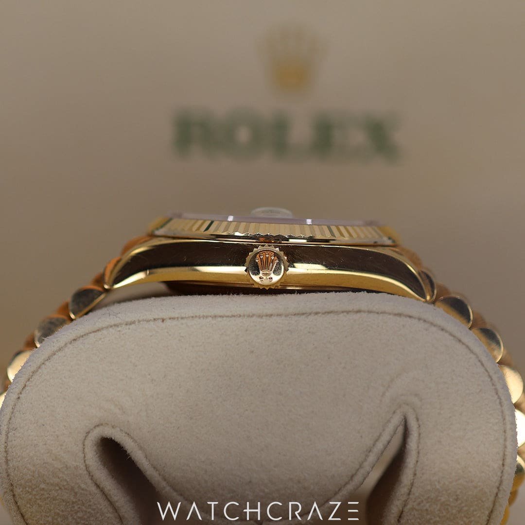 Legacy of Durability: True to Rolex’s heritage of excellence, the Day-Date 36mm is meticulously designed to be water-resistant, ensuring that its elegance and function endure through time and tide.