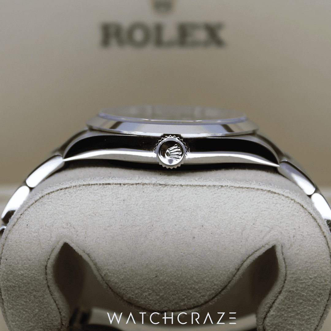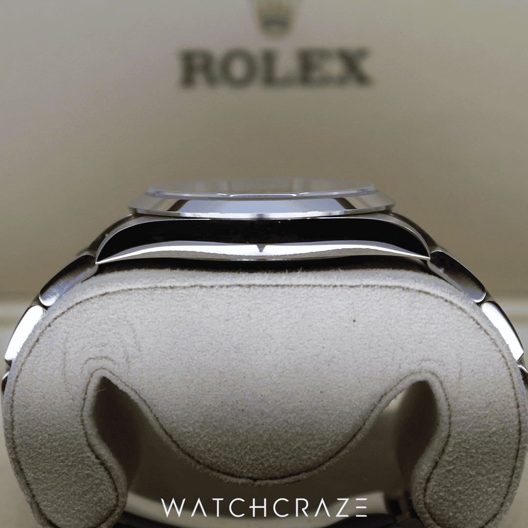 This Rolex Explorer offers a comfortable fit while maintaining a commanding wrist presence thanks to its modest 40mm case size. The watch’s sturdy Oystersteel case and bracelet not only improve its looks but also increase its toughness.