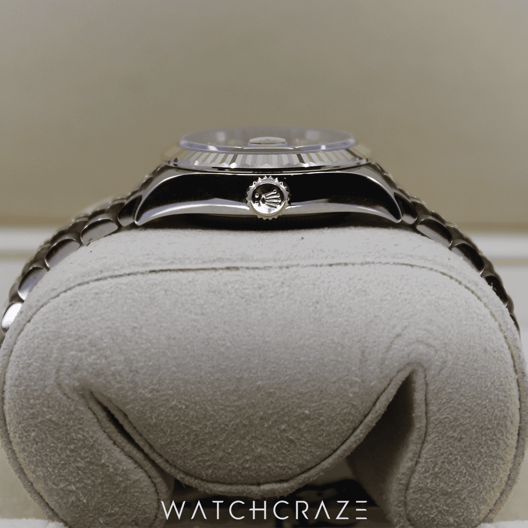 The self-winding mechanical high-precision Calibre 2236 that powers this Lady-Datejust guarantees accurate timekeeping and a 55-hour power reserve. Its beauty is enhanced by the date function, which is magnified by the Cyclops lens.