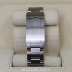 The 41mm Oyster case is made of corrosion-resistant Oystersteel. It’s a sturdy daily wearer. Rolex’s patented twin-lock double waterproof system guarantees 100-meter waterproofness.